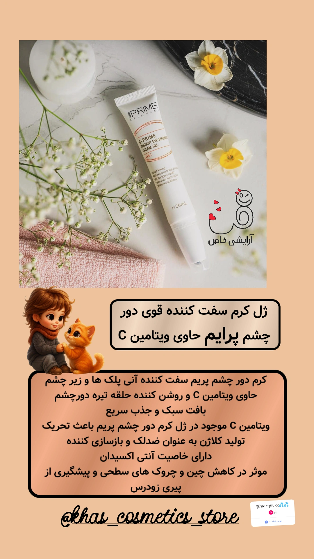 کرم دور چشم پرایم ۴ کاره مدل تیوپی یکی از کاملترین و تخصصیترین محصولات مراقبت از پوست اطراف چشم است که توسط لابراتوار دکتر اخوی تولید شده. این محصول با فرمولاسیونی پیشرفته و ترکیبات مؤثر، چهار عملکرد اصلی را همزمان ارائه میدهد: کاهش پف، روشنکردن تیرگی، کاهش خطوط ریز و لیفت و سفتکنندگی پوست اطراف چشم. بافت سبک و جذب سریع این کرم باعث میشود بدون ایجاد چربی یا سنگینی، بهسرعت در پوست نفوذ کرده و نتایج قابلمشاهدهای ایجاد کند.