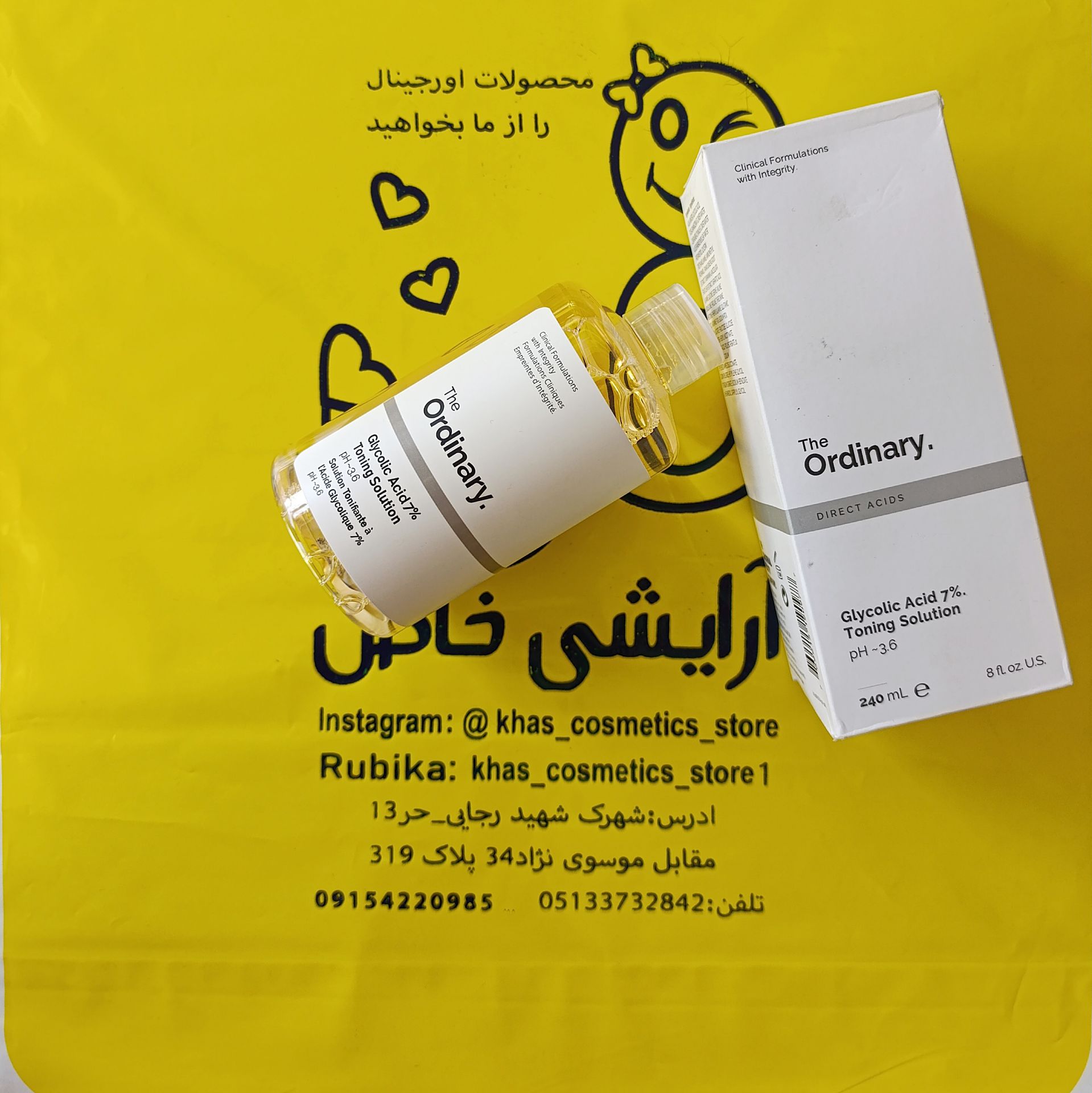 تونر گلیکولیک اسید ۷٪ اوردینری | لایه‌بردار ملایم، روشن‌کننده پوست، ضد لک و کنترل چربی کف سر – آرایشی خاص